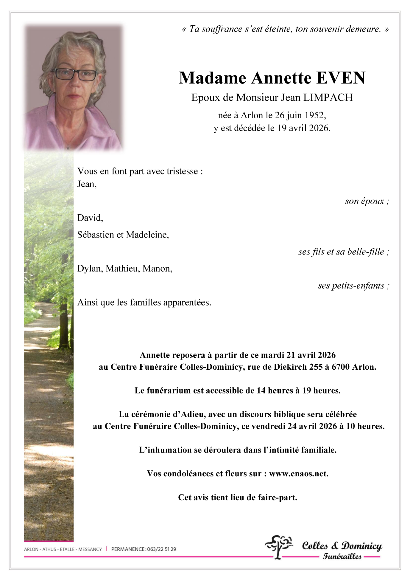 Centre Funéraire Arlon de le vendredi 24 avril à 10 heures