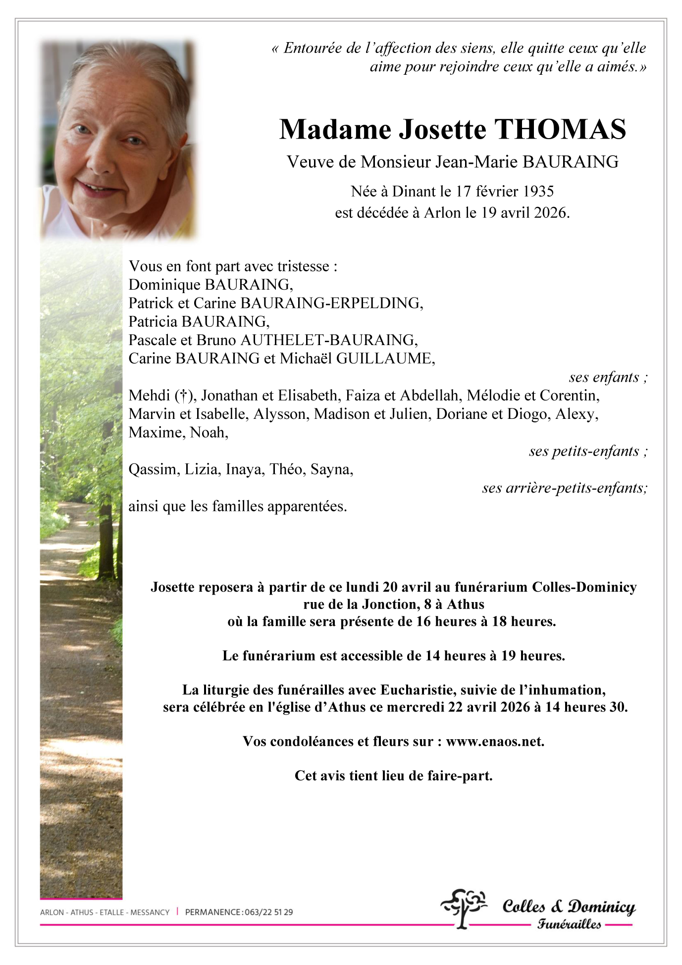 Cimetière Athus 39 le mercredi 22 avril à 15 heures 30