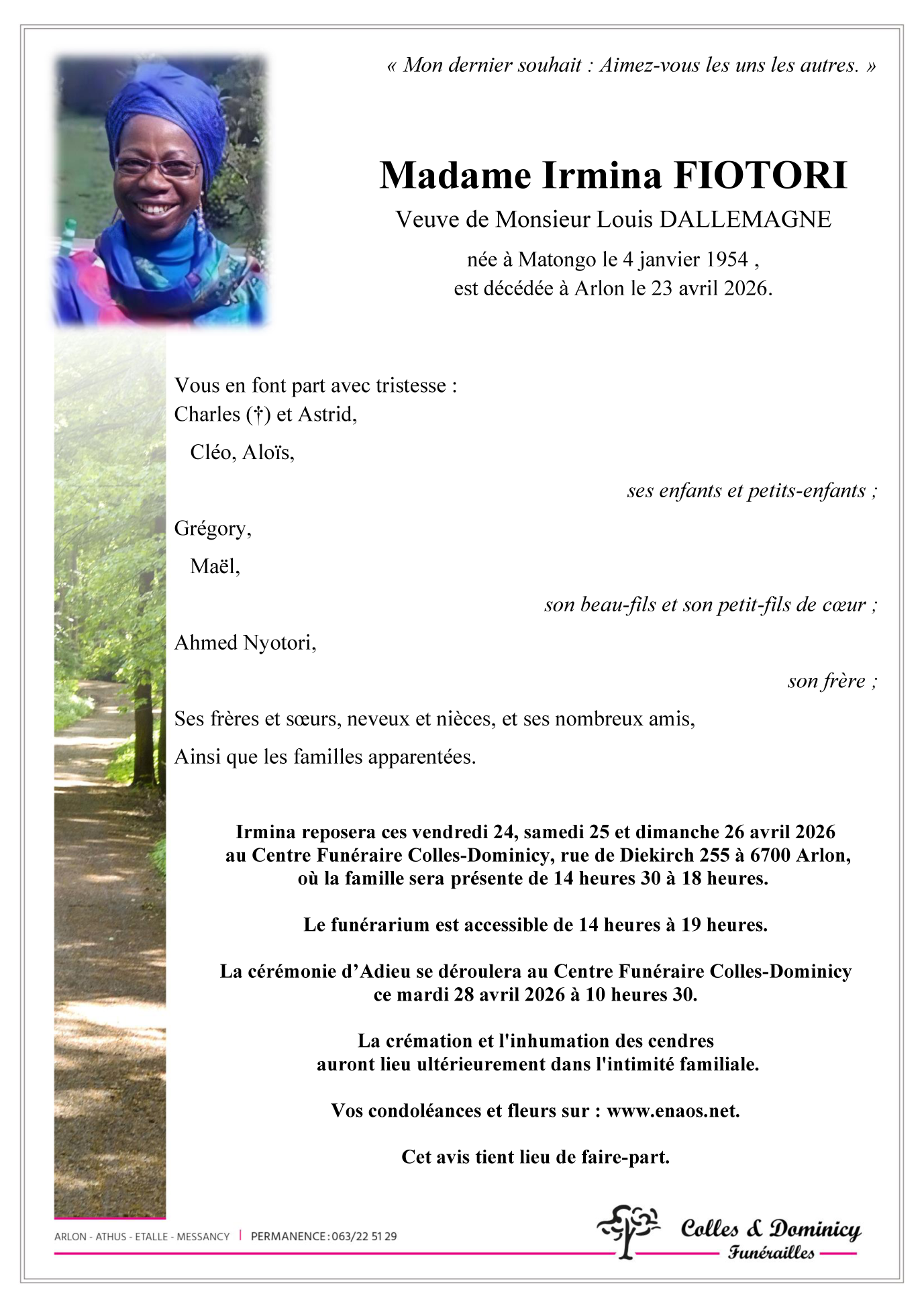 Centre Funéraire Arlon de le mardi 28 avril à 10 heures 30