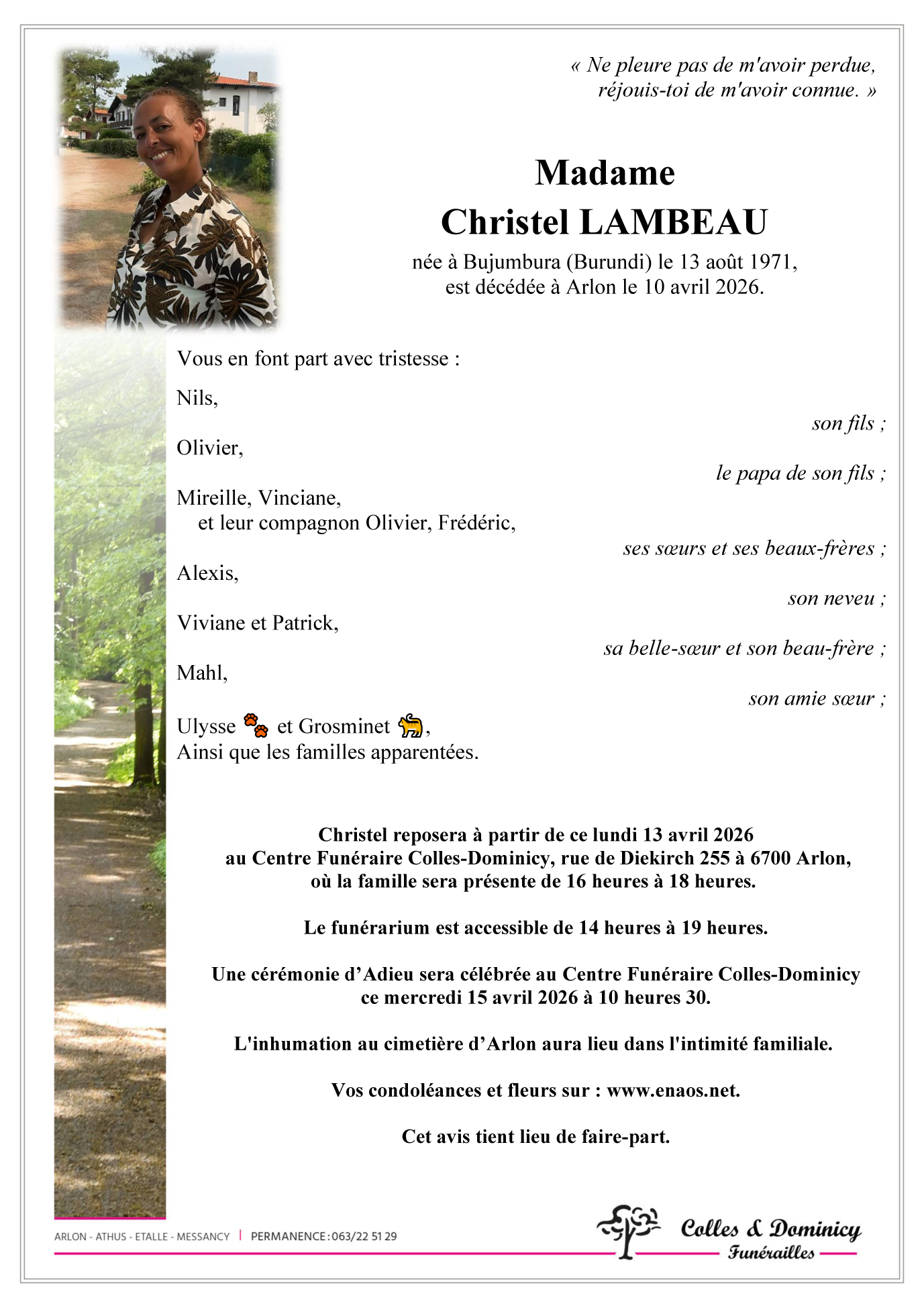 Centre Funéraire Arlon de Arlon le mercredi 15 avril à 10 heures 30