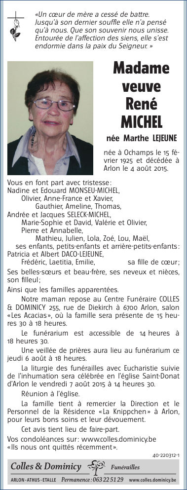 Madame veuve René MICHEL née Marthe LEJEUNE