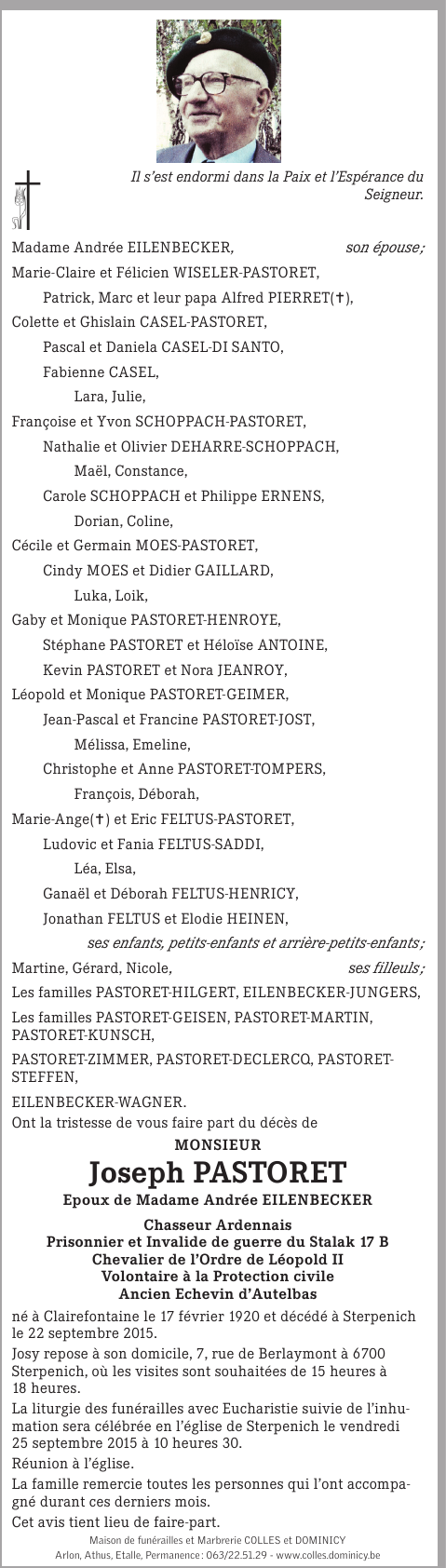 Décédé à Sterpenich (6700) le mardi 22 septembre 2015 à l'âge de 95 ans