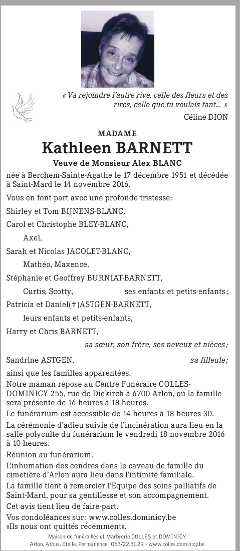 le lundi 14 novembre 2016 à l'âge de 64 ans