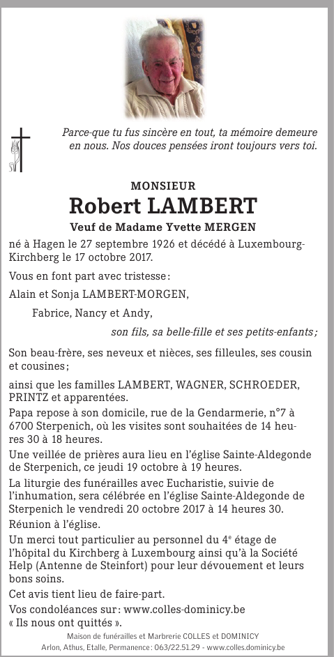 le mardi 17 octobre 2017 à l'âge de 91 ans