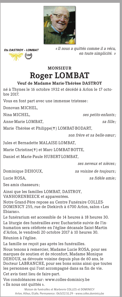 le mardi 17 octobre 2017 à l'âge de 85 ans