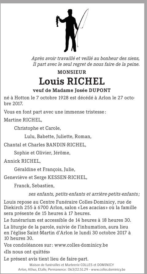 Décédé à Arlon (6700) le vendredi 27 octobre 2017 à l'âge de 89 ans