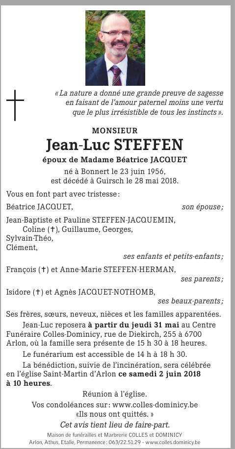 Décédé à Guirsch (6704) le lundi 28 mai 2018 à l'âge de 61 ans