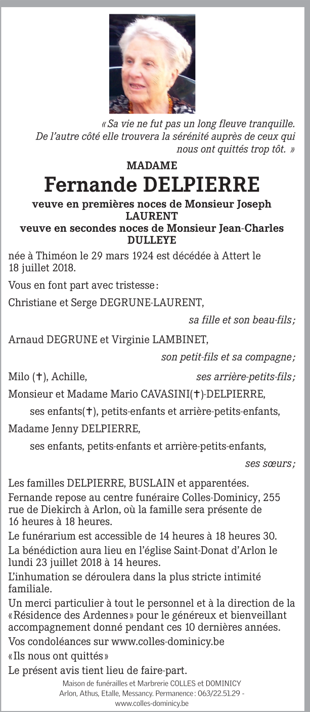 Madame Fernande DELPIERRE