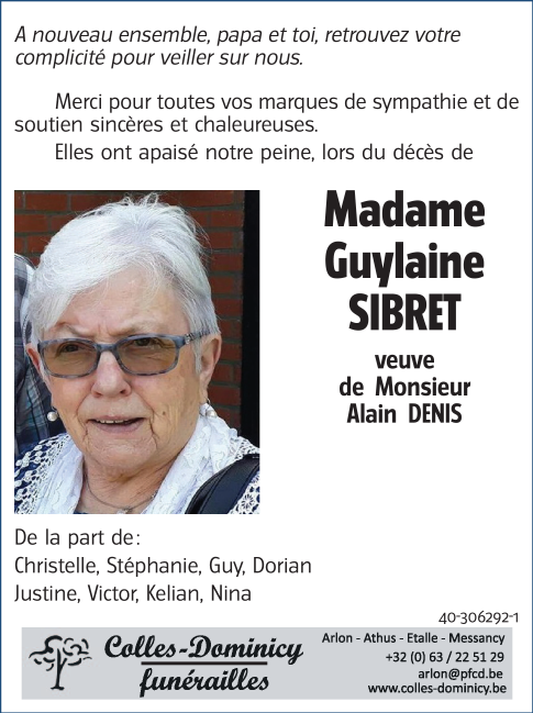 Veuve de Monsieur Alain DENIS