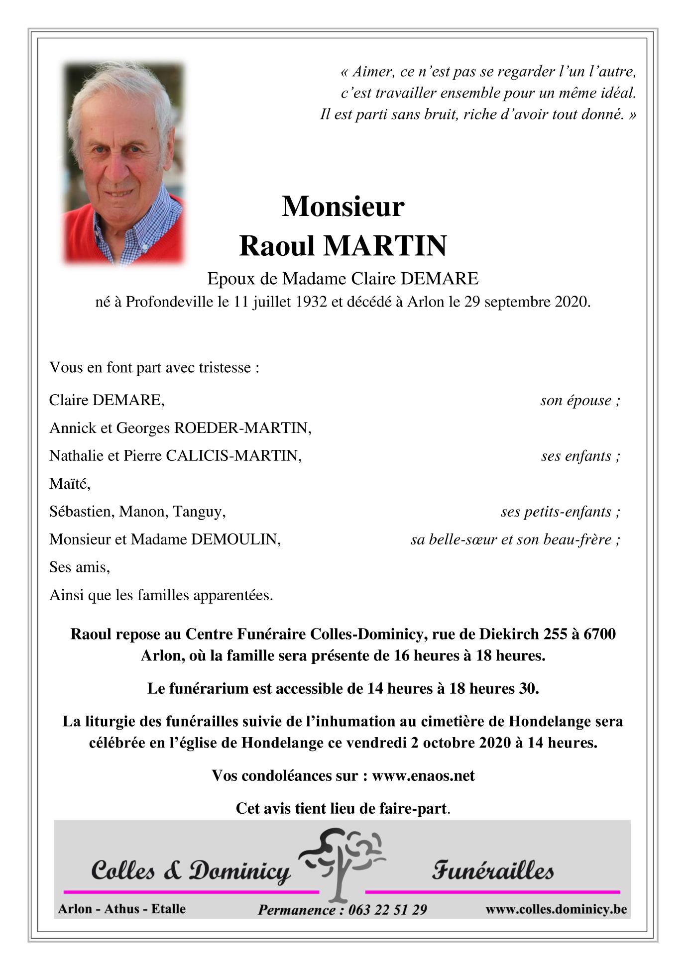 Décédé à Arlon (6700) le mardi 29 septembre 2020 à l'âge de 88 ans