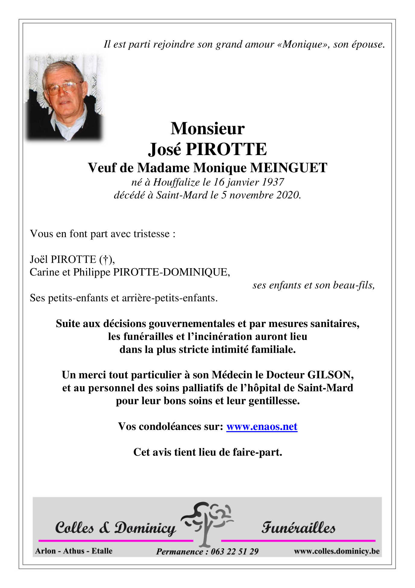 Décédé à Saint-Mard (6762) le jeudi 5 novembre 2020 à l'âge de 83 ans