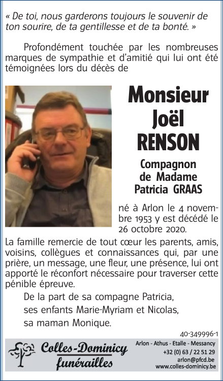 Décédé à Arlon (6700) le lundi 26 octobre 2020 à l'âge de 66 ans
