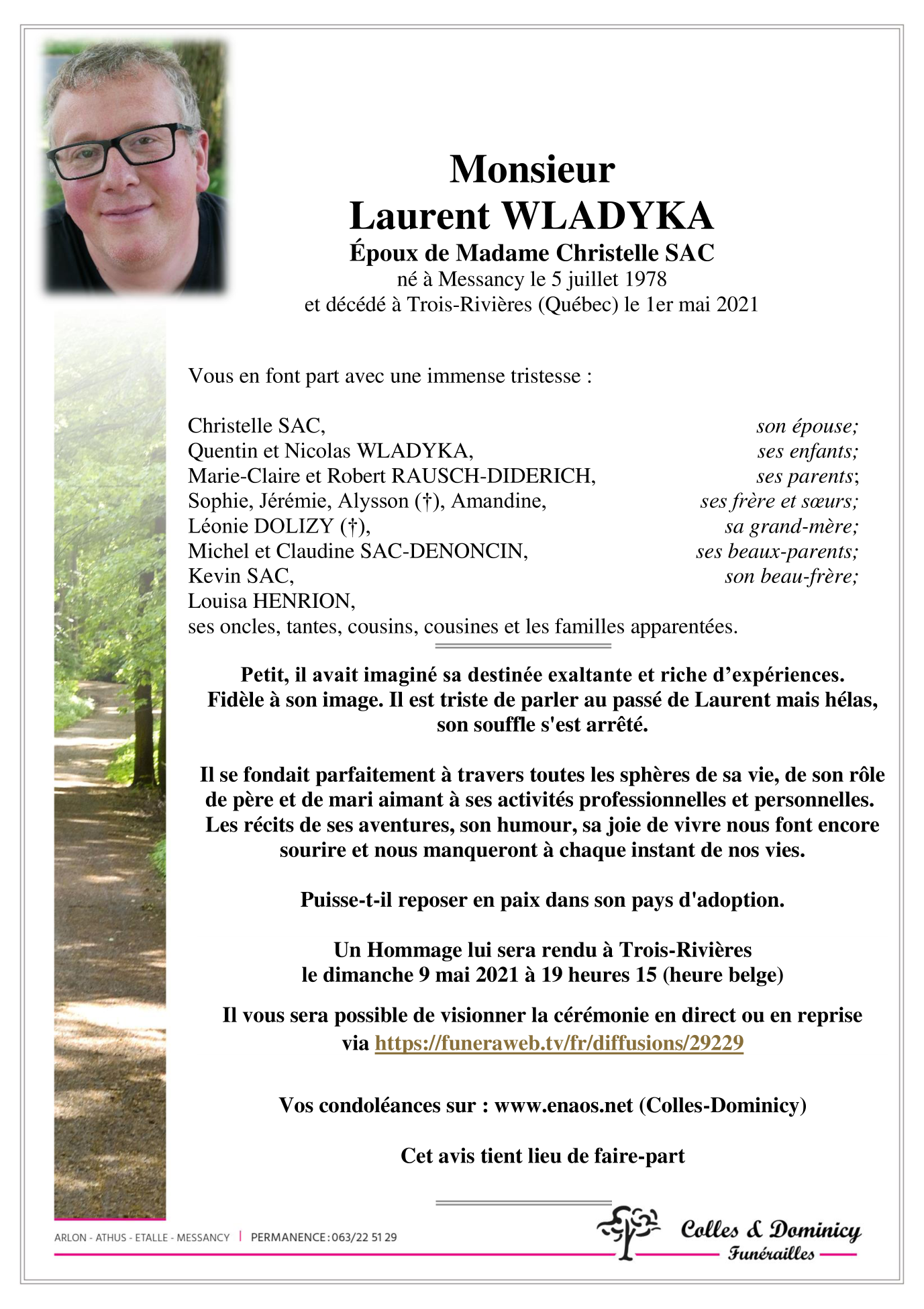 Décédé à Trois-Rivieres (G8T, Canada) le samedi 1 mai 2021 à l'âge de 42 ans
