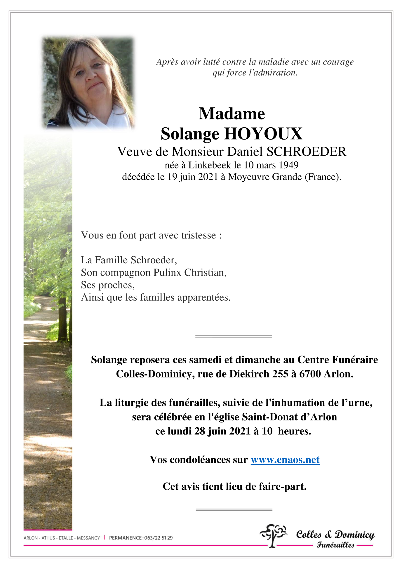 Décédée à Moyeuvre-Grande (57250, France) le samedi 19 juin 2021 à l'âge de 72 ans