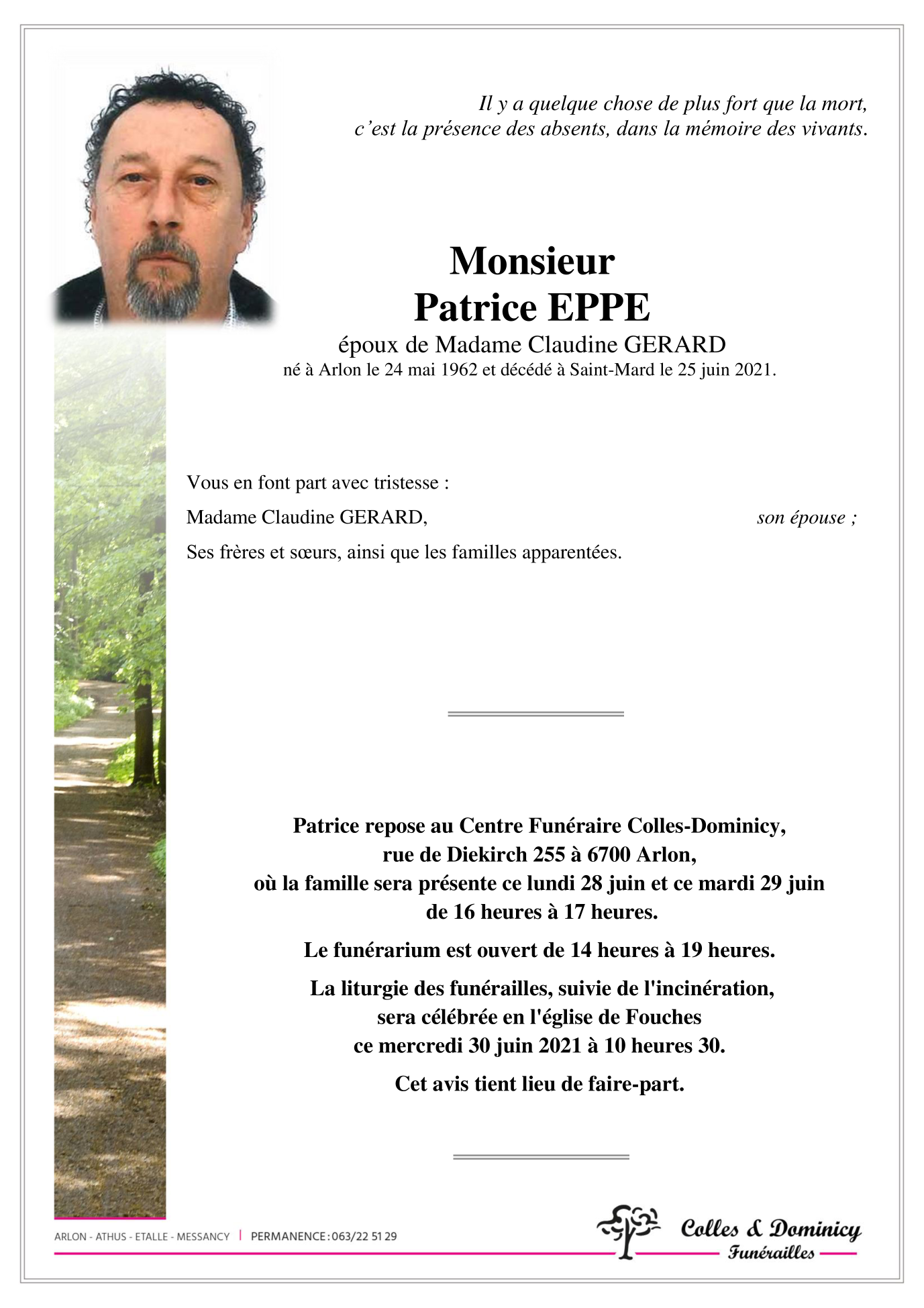 Décédé à Saint-Mard (6762) le vendredi 25 juin 2021 à l'âge de 59 ans