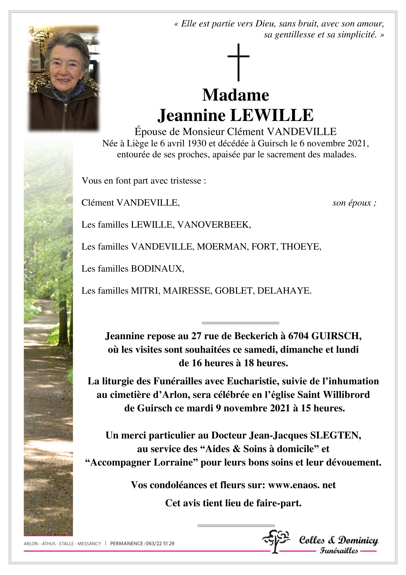 Décédée à Guirsch (6704) le samedi 6 novembre 2021 à l'âge de 91 ans