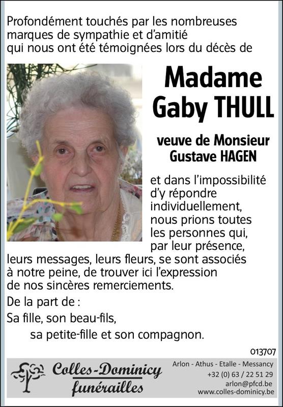 Décédée à Messancy (6780) le dimanche 31 octobre 2021 à l'âge de 91 ans