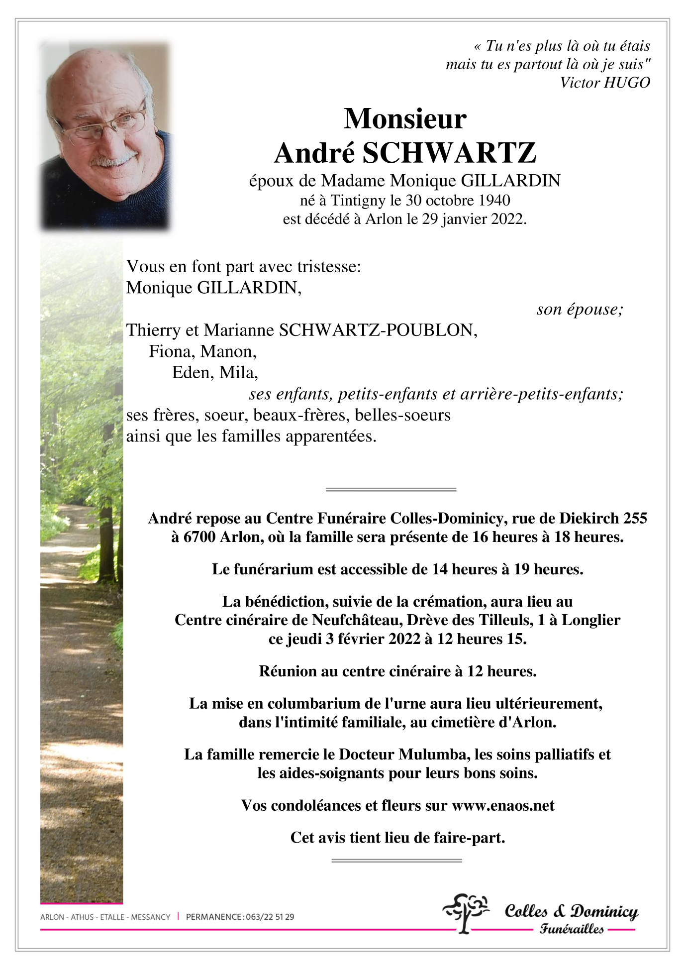 Décédé à Arlon (6700) le samedi 29 janvier 2022 à l'âge de 81 ans