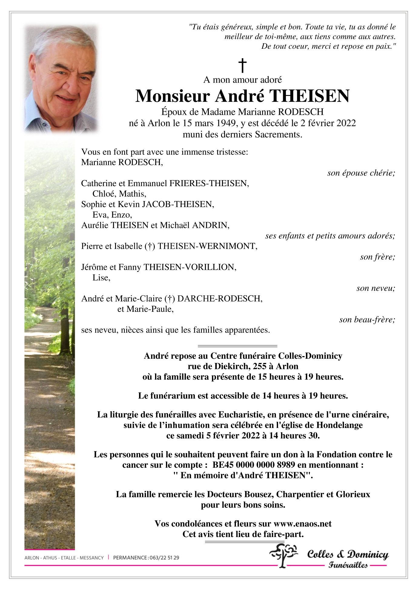 Décédé à Arlon (6700) le mercredi 2 février 2022 à l'âge de 72 ans