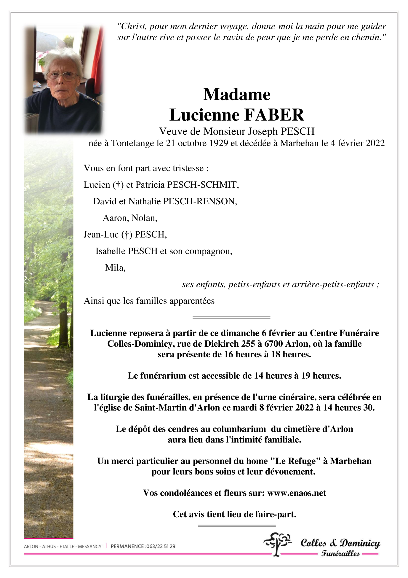 Décédée à Rulles (6724) le vendredi 4 février 2022 à l'âge de 92 ans