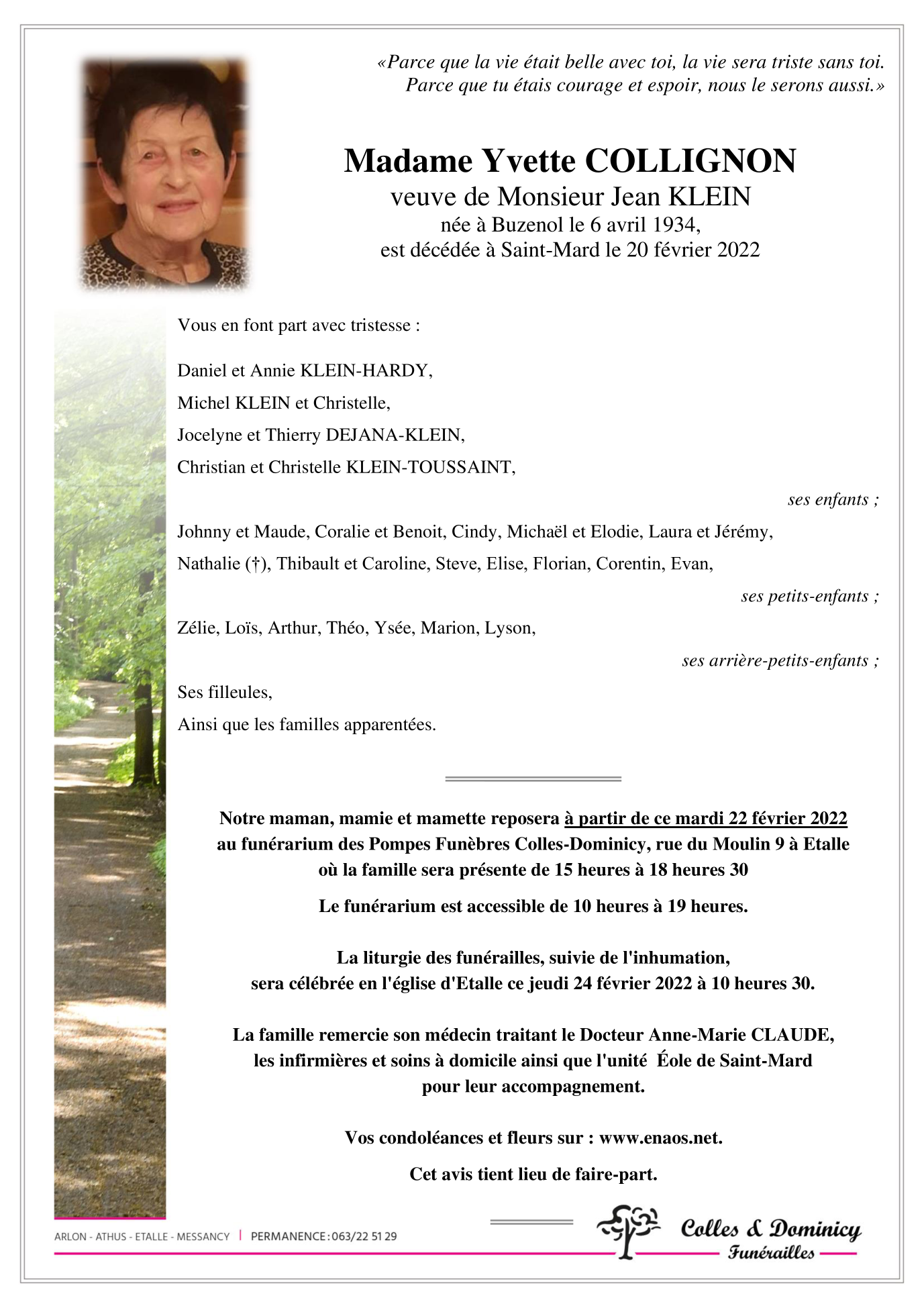 Décédée à Saint-Mard (6762) le dimanche 20 février 2022 à l'âge de 87 ans