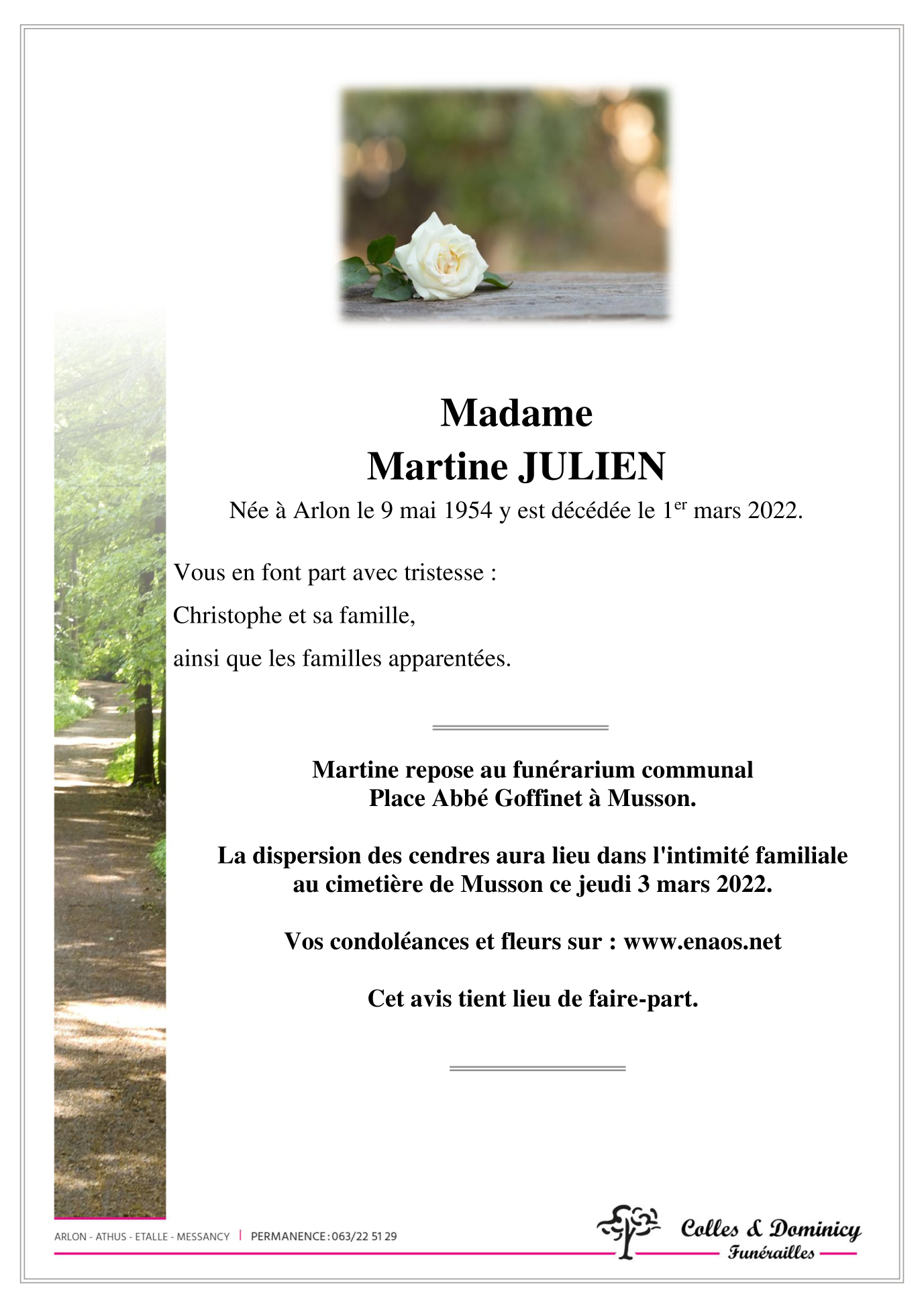 Décédée à Arlon (6700) le mardi 1 mars 2022 à l'âge de 67 ans