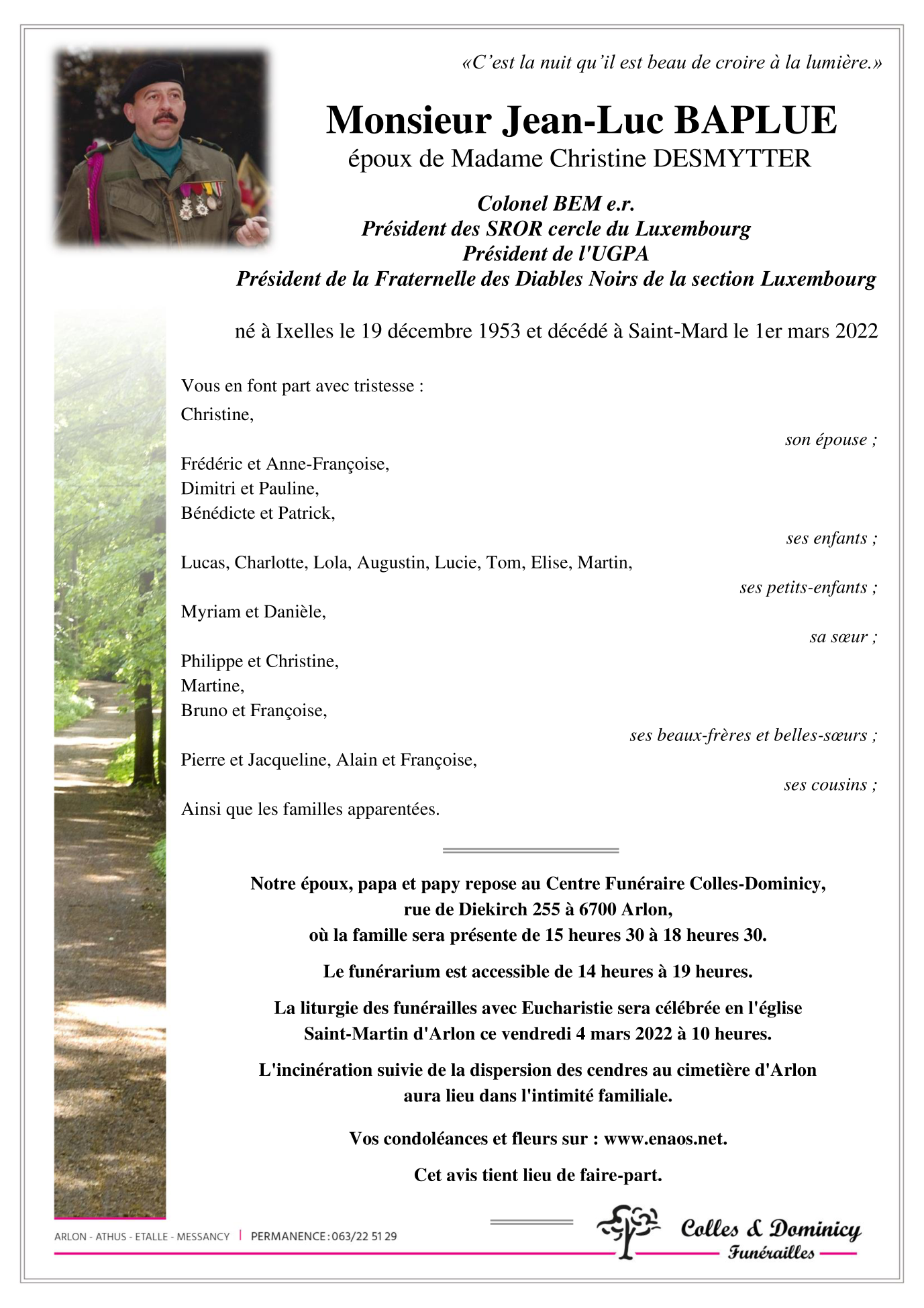 Décédé à Saint-Mard (6762) le mardi 1 mars 2022 à l'âge de 68 ans