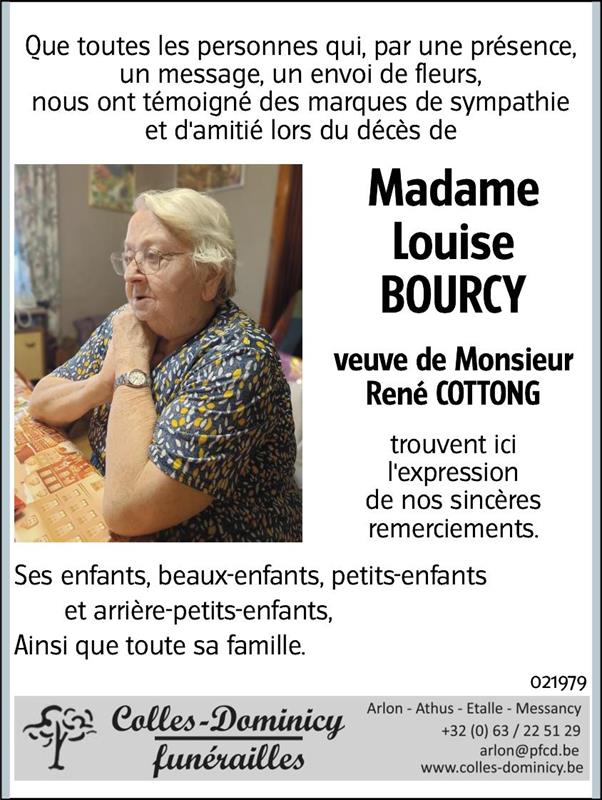 Décédée à Arlon (6700) le lundi 21 février 2022 à l'âge de 87 ans