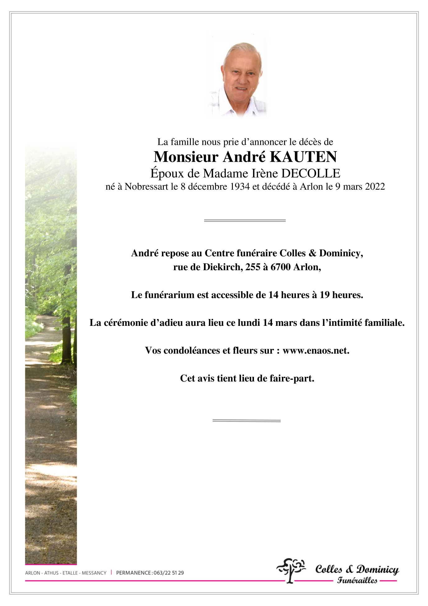 Décédé à Arlon (6700) le mercredi 9 mars 2022 à l'âge de 87 ans
