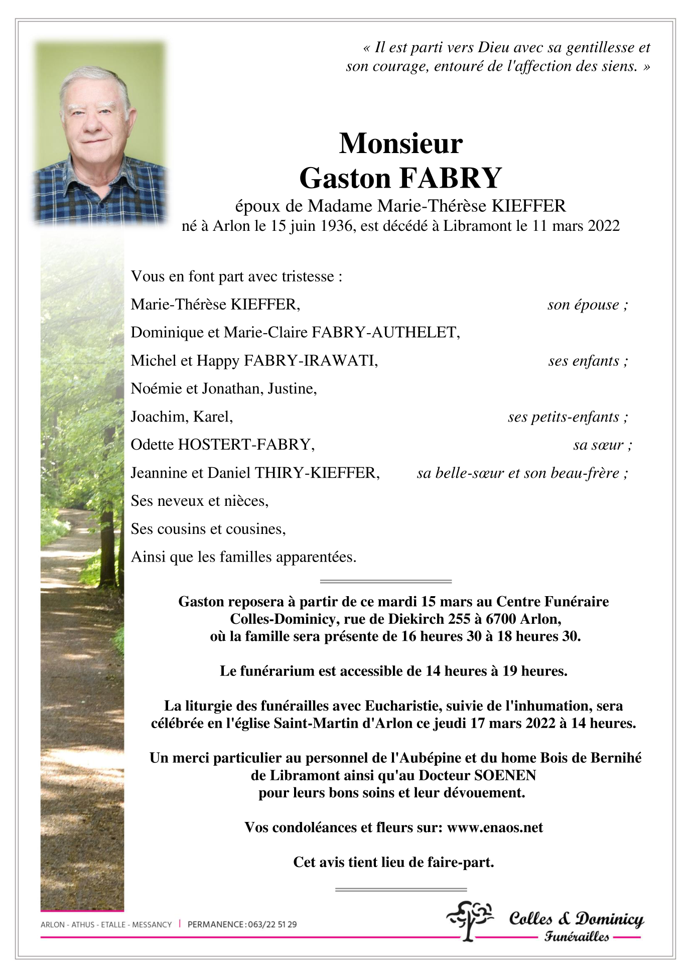 Décédé à Libramont-Chevigny (6800) le vendredi 11 mars 2022 à l'âge de 85 ans