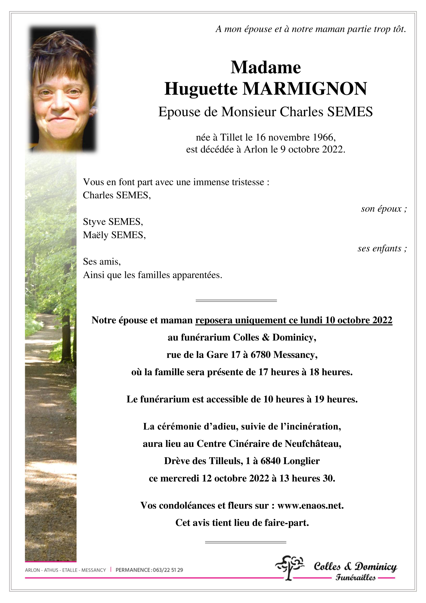 Décédée à Arlon (6700) le dimanche 9 octobre 2022 à l'âge de 55 ans