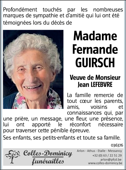 Décédée à Carlsbourg (6850) le jeudi 20 octobre 2022 à l'âge de 92 ans