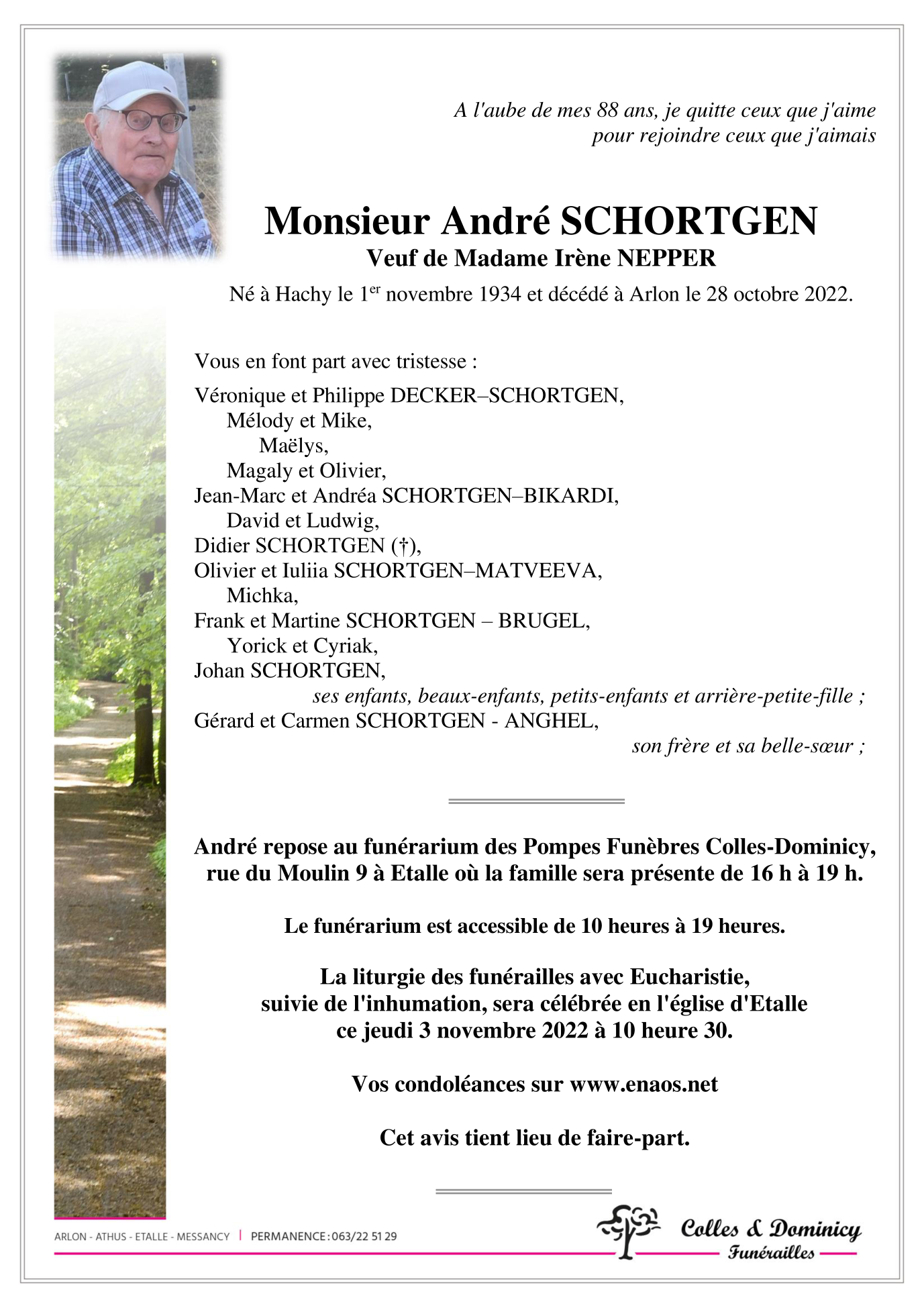 Décédé à Arlon (6700) le vendredi 28 octobre 2022 à l'âge de 87 ans