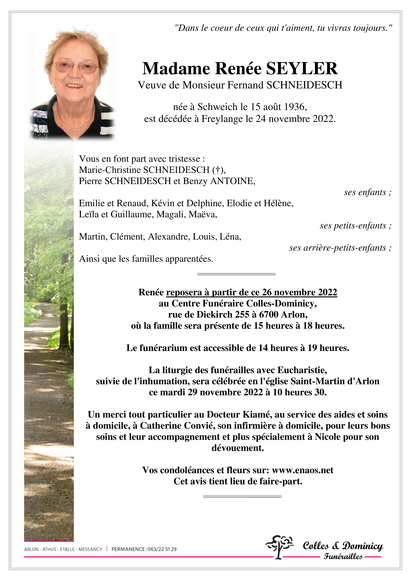Veuve de Monsieur Fernand SCHNEIDESCH