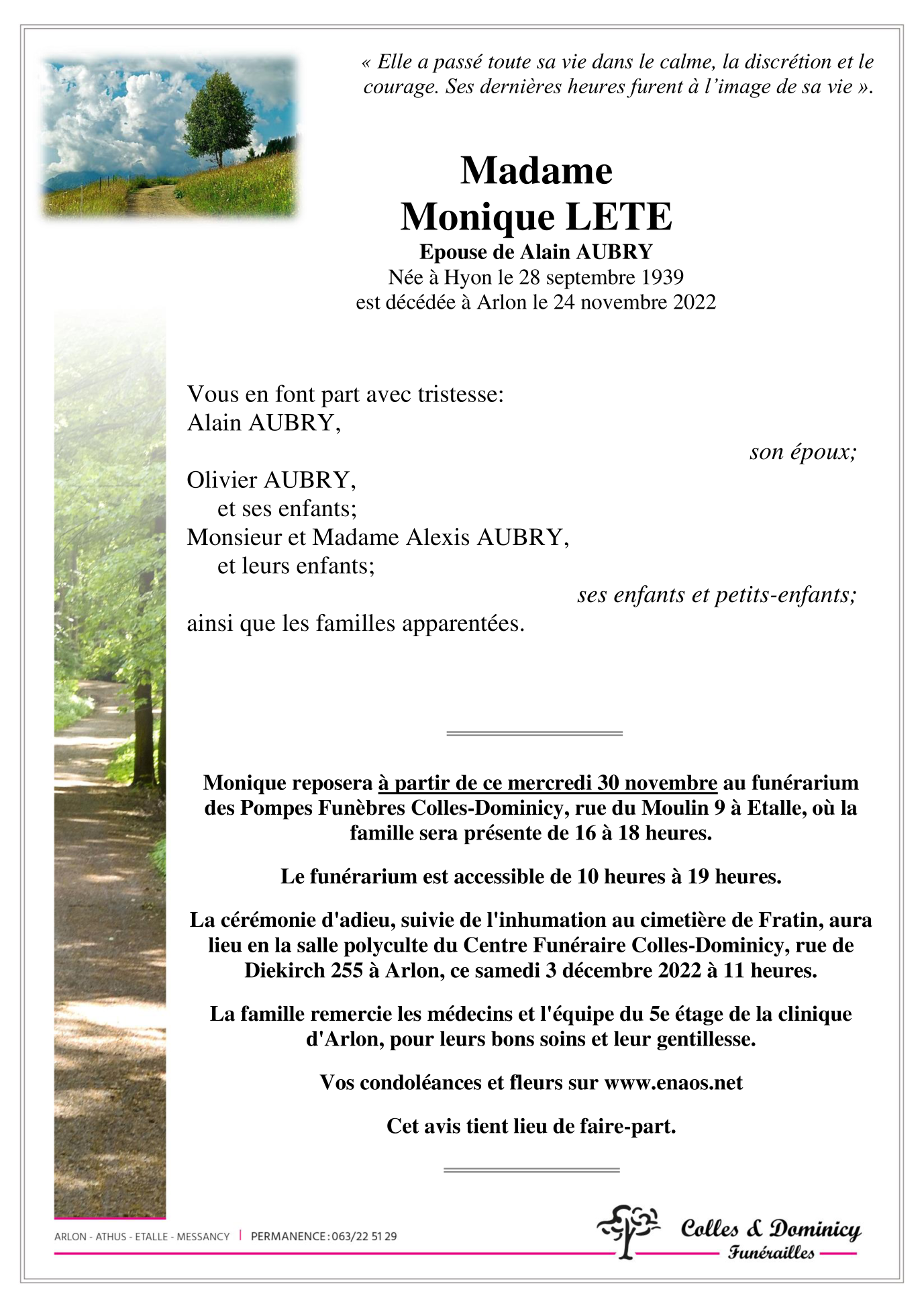 Madame Monique LETE