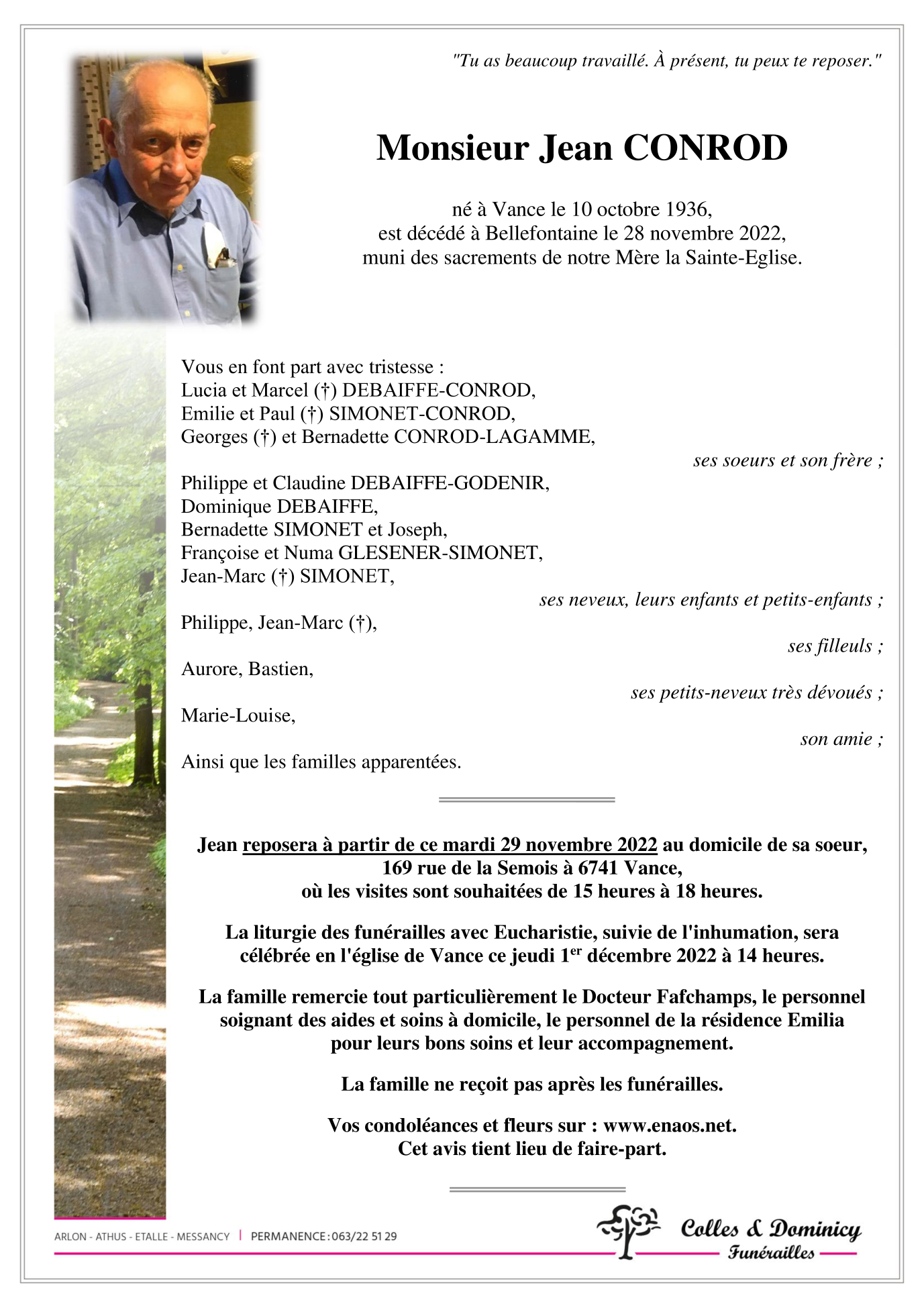 Décédé à Bellefontaine (Lux.) (6730) le lundi 28 novembre 2022 à l'âge de 86 ans