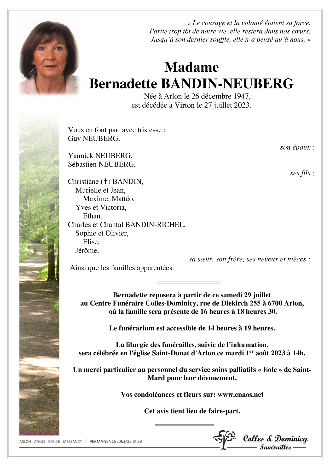 Décédée à Saint-Mard (6762) le jeudi 27 juillet 2023 à l'âge de 75 ans