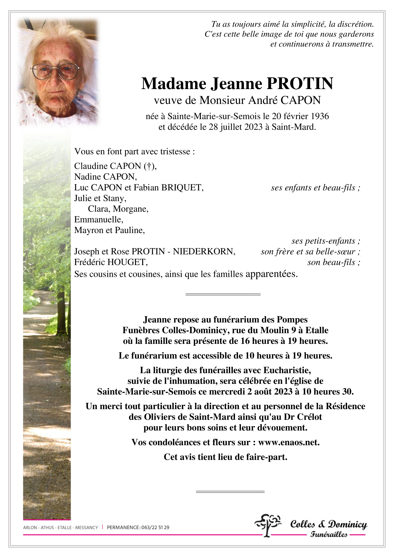 Madame Jeanne PROTIN