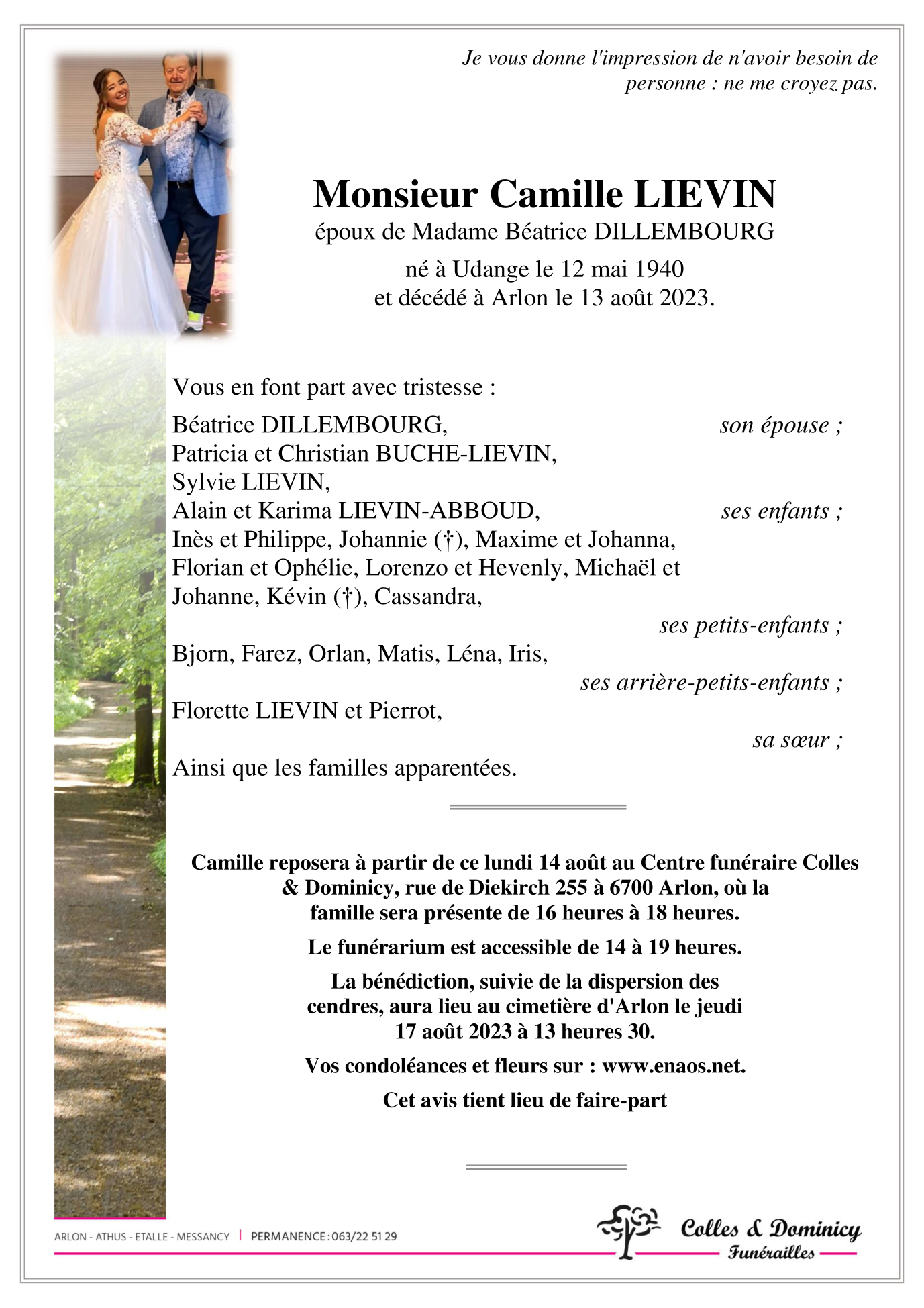 Décédé à Arlon (6700) le dimanche 13 août 2023 à l'âge de 83 ans