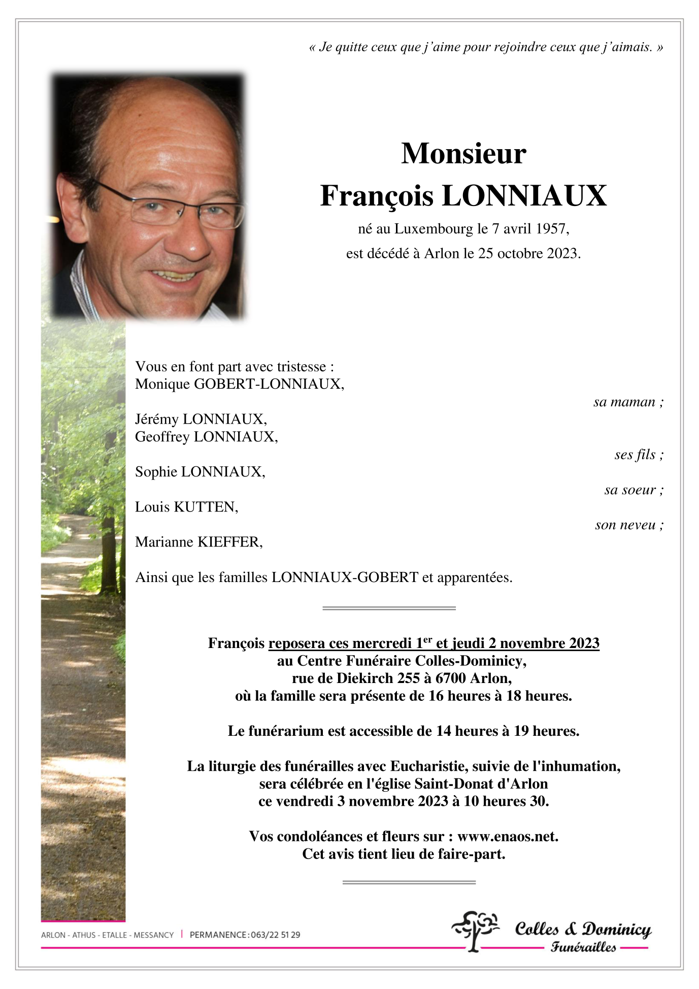Décédé à Arlon (6700) le mercredi 25 octobre 2023 à l'âge de 66 ans