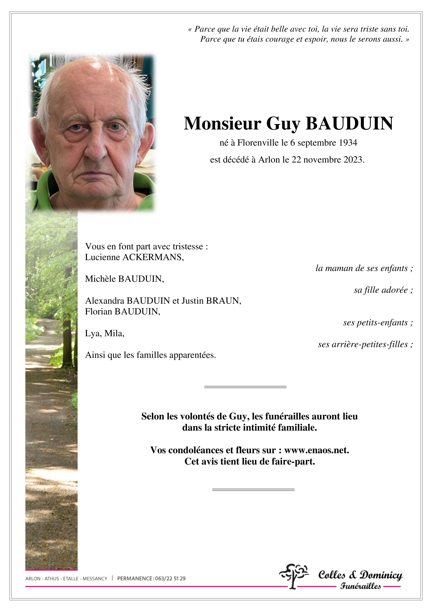 Décédé à Arlon (6700) le mercredi 22 novembre 2023 à l'âge de 89 ans