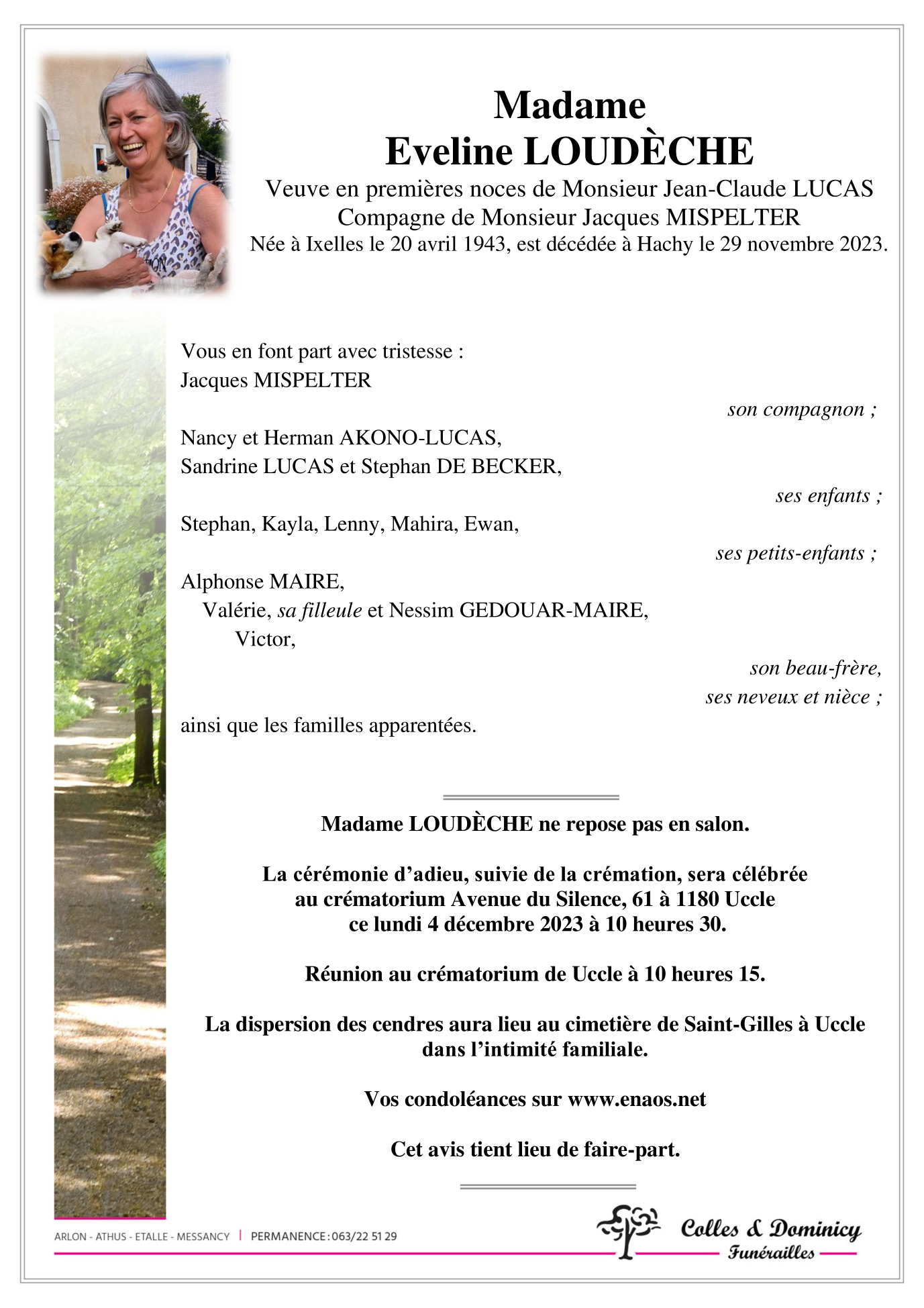 Décédée à Hachy (6720) le mercredi 29 novembre 2023 à l'âge de 80 ans