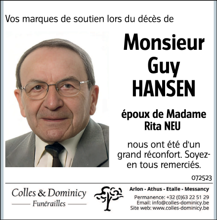Décédé à Saint-Mard (6762) le jeudi 20 juin 2024 à l'âge de 92 ans