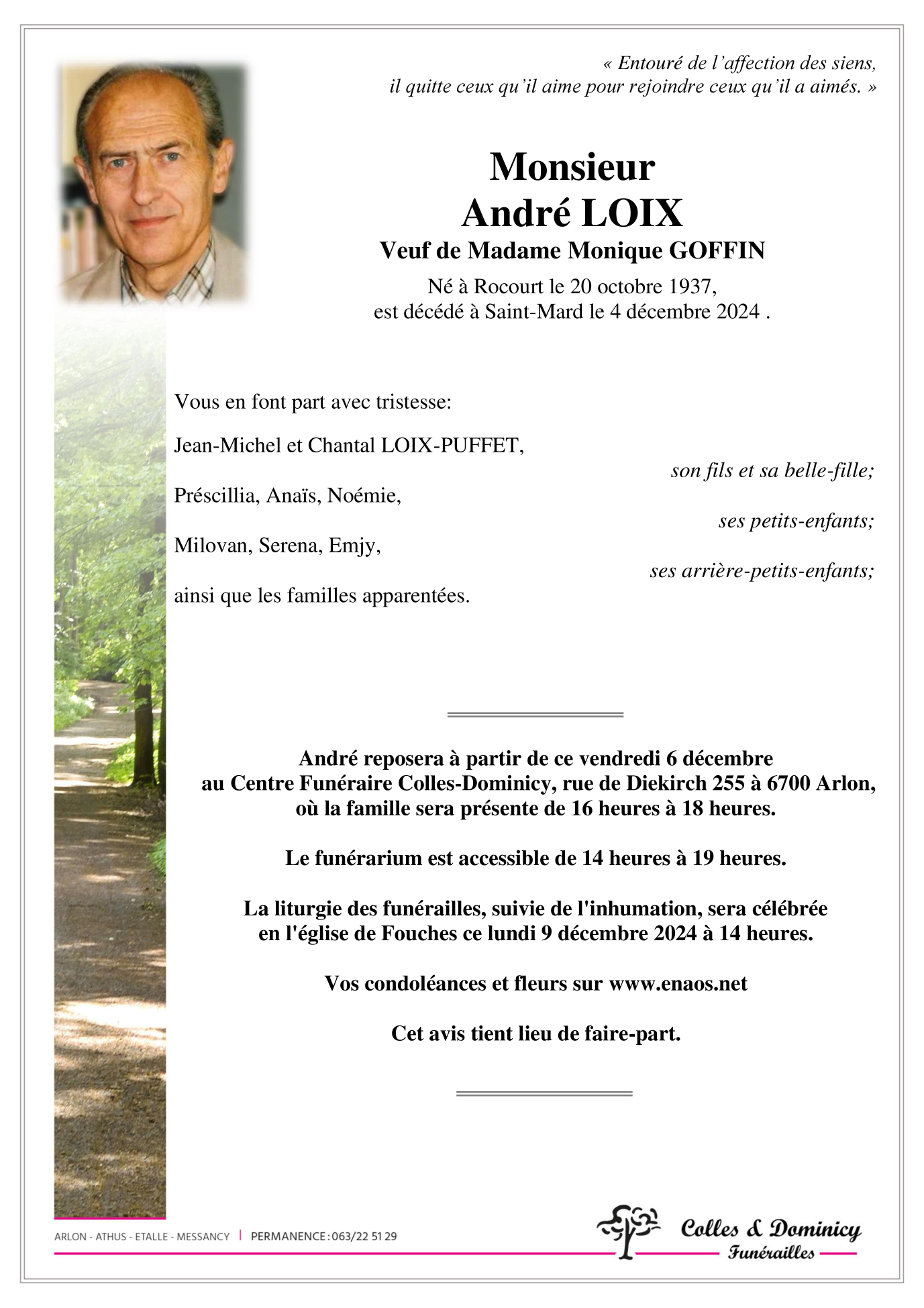 Décédé à Saint-Mard (6762) le mercredi 4 décembre 2024 à l'âge de 87 ans
