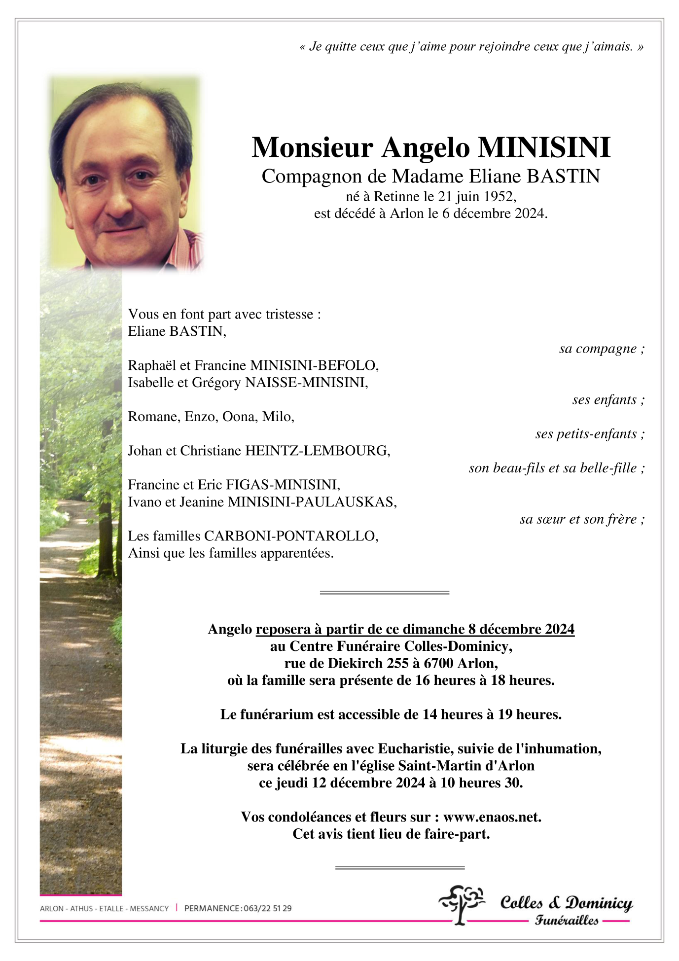 Décédé à Arlon (6700) le vendredi 6 décembre 2024 à l'âge de 72 ans