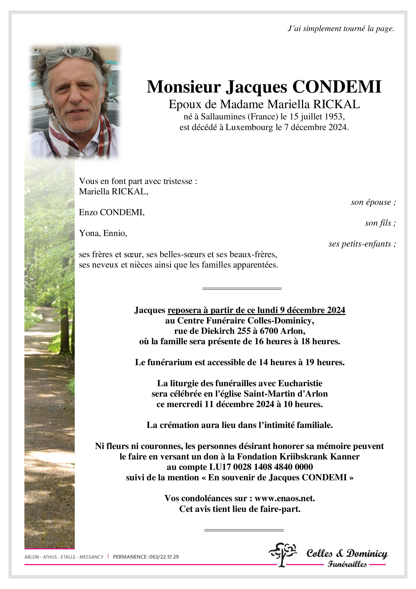 Décédé à Luxembourg/Barble  (1210, Luxembourg) le samedi 7 décembre 2024 à l'âge de 71 ans