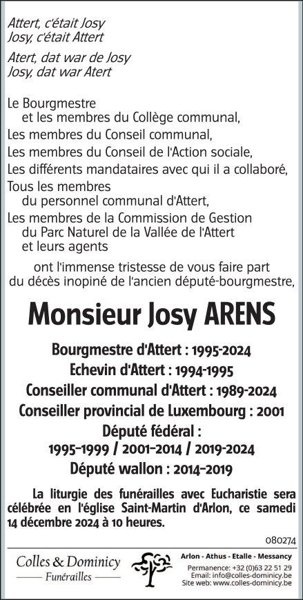 Décédé à Bouge (5004) le mardi 10 décembre 2024 à l'âge de 72 ans