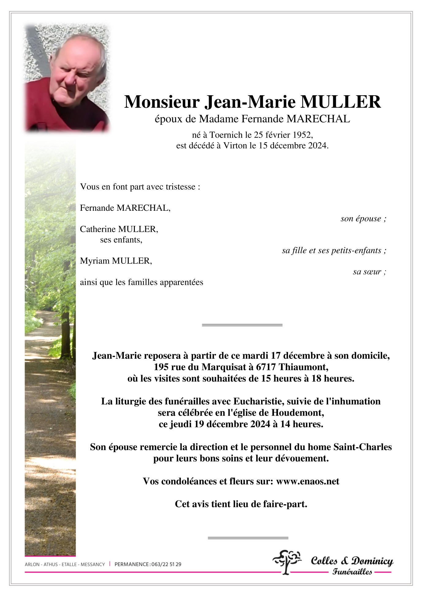 Décédé à Saint-Mard (6762) le dimanche 15 décembre 2024 à l'âge de 72 ans