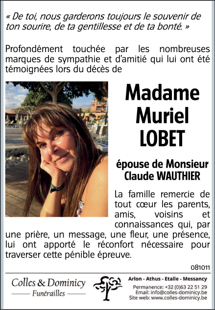 Décédée à Saint-Mard (6762) le samedi 14 décembre 2024 à l'âge de 58 ans