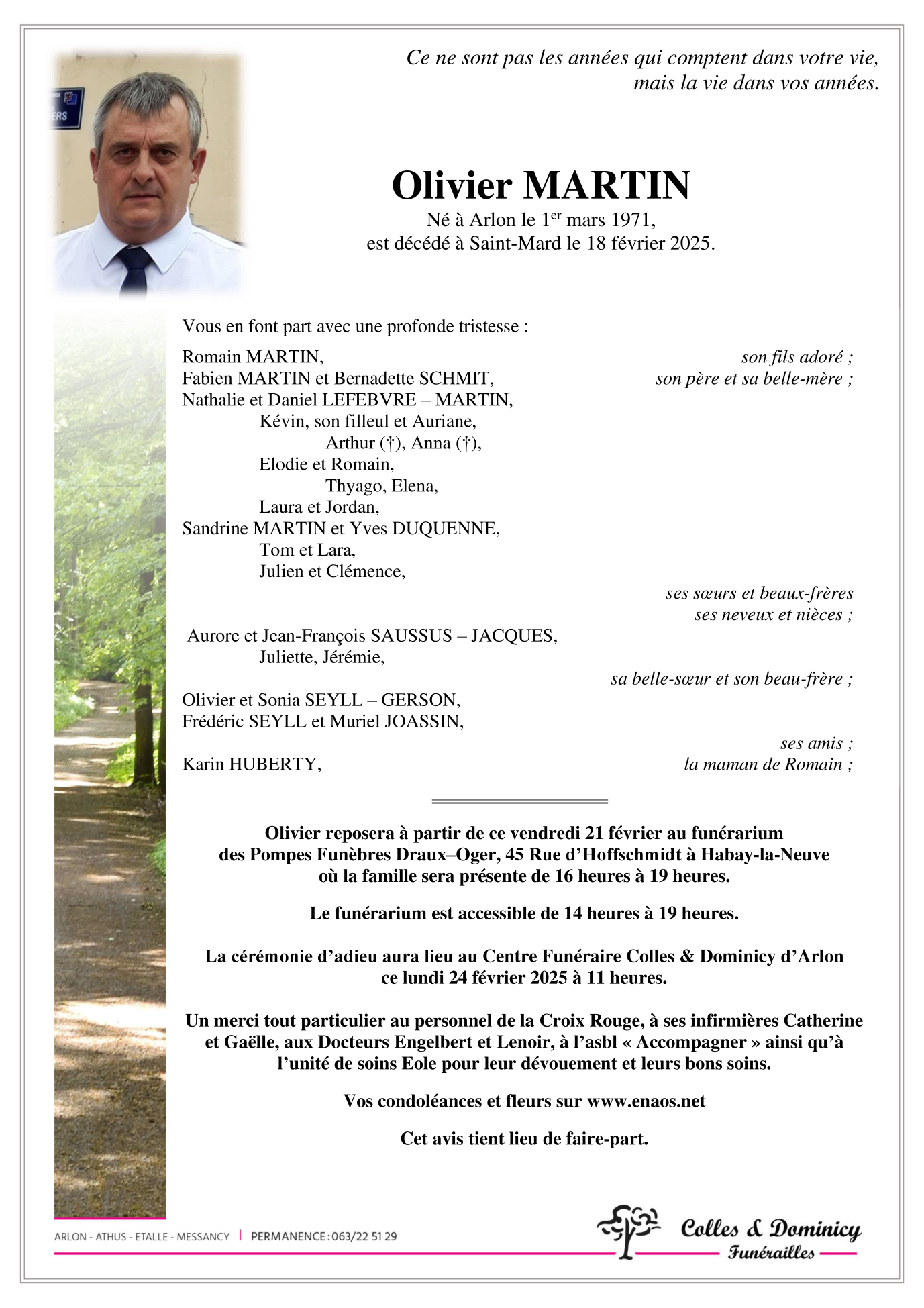 Décédé à Saint-Mard (6762) le mardi 18 février 2025 à l'âge de 53 ans